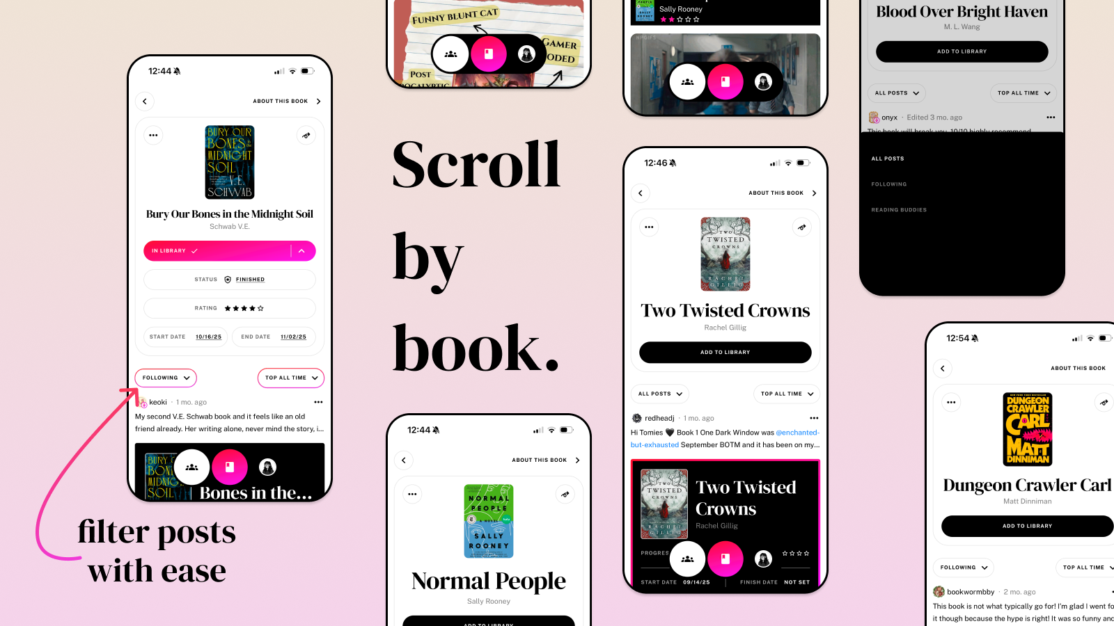 Filter by your posts, those you’re following, everyone, and your Reading Buddies